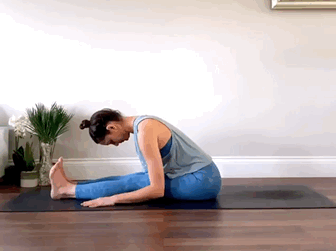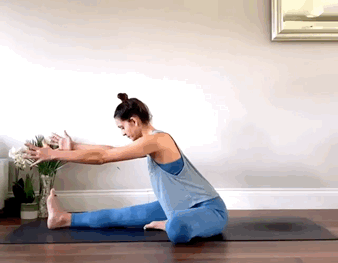 配合呼吸,伸直双腿感受大腿后侧拉伸